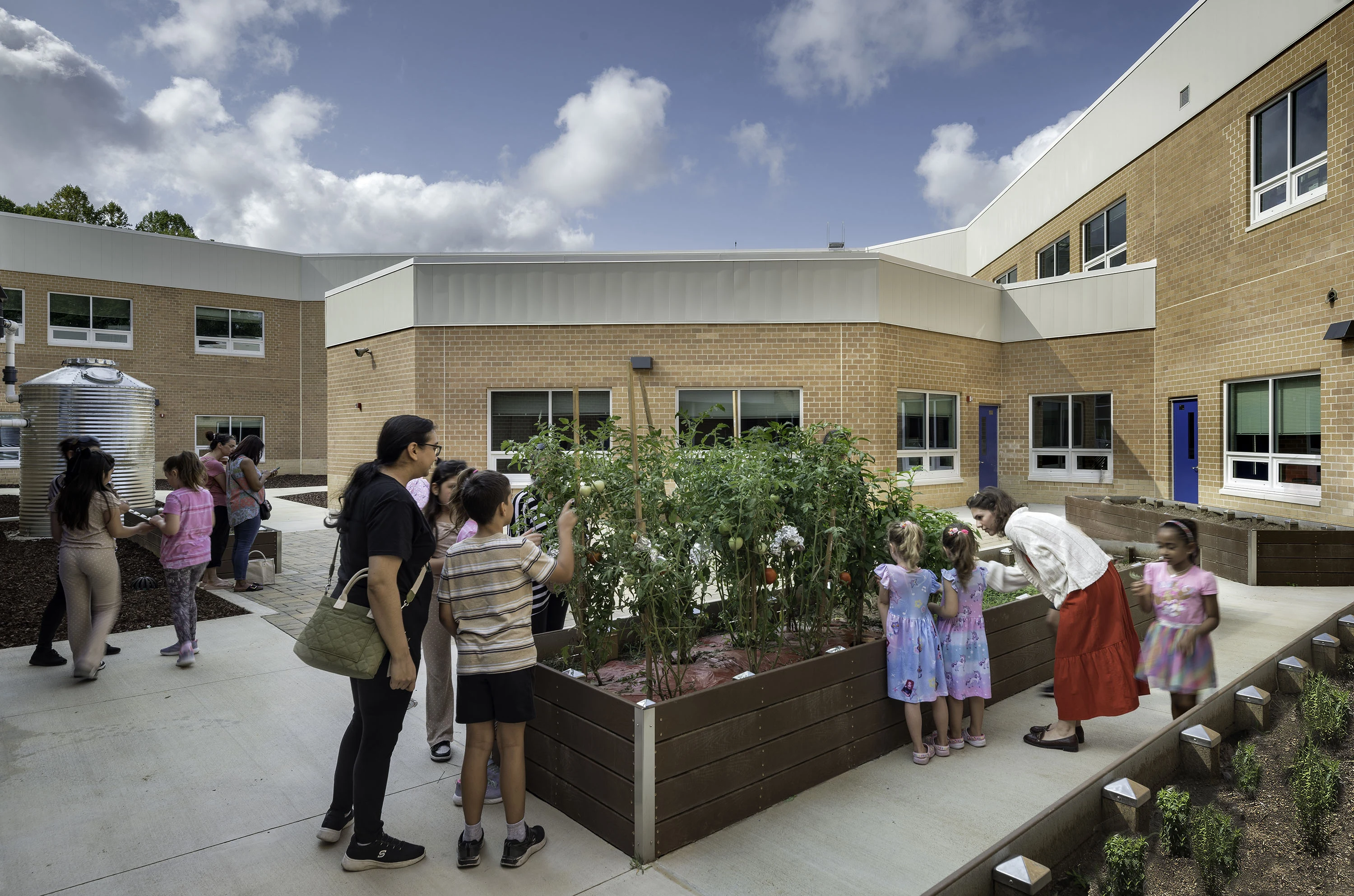 - A secure courtyard and an outdoor classroom that integrate learning with nature to support environmental awareness. The courtyard includes over 800 square feet dedicated to edible plants, as well as raised beds in front of the building.