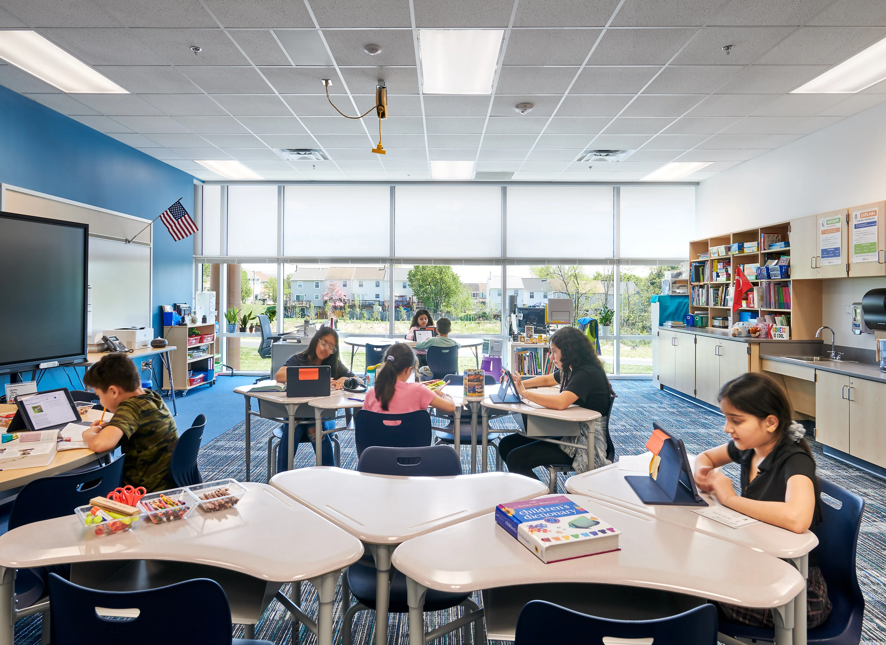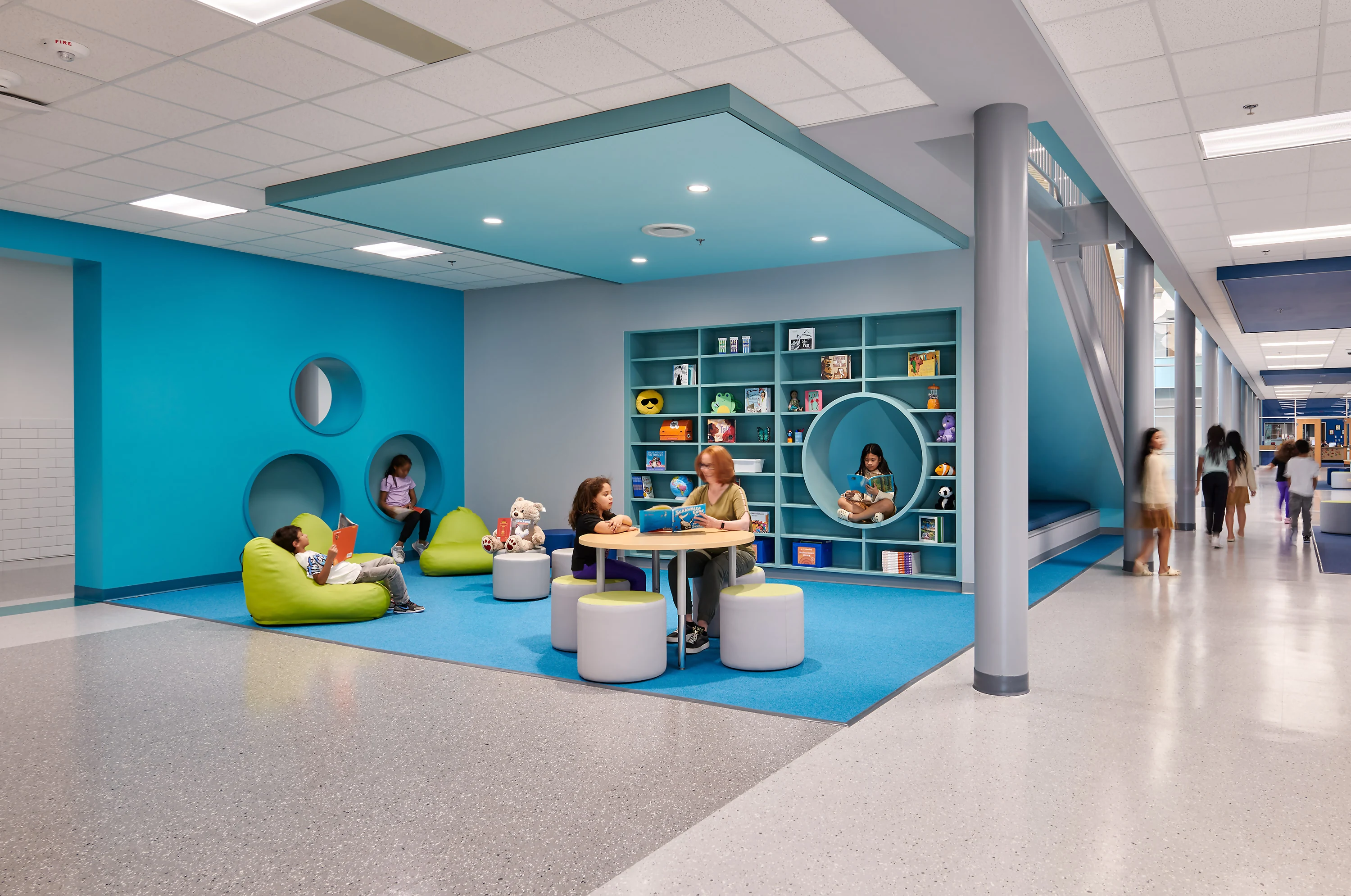 Innovation Elementary School puts its mission into practice: students demonstrate creativity, challenge their capabilities, work collaboratively, and appreciate individual differences. The architecture supports these goals through spaces designed for exploration across grade levels. From the open gathering areas to the outdoor learning spaces, each element amplifies opportunities for discovery while strengthening community bonds.